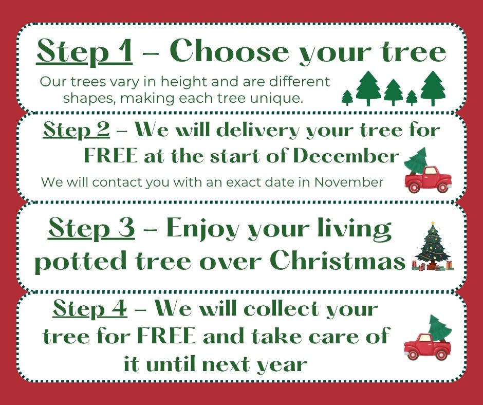 In 2022 we started growing Christmas trees in pots and have been developing our ideas ever since. In 2024 you will be able to pick your individual tree and this will be your unique family tree for you to adopt for 3 weeks over Christmas and we will care for it for the other 49 weeks.
